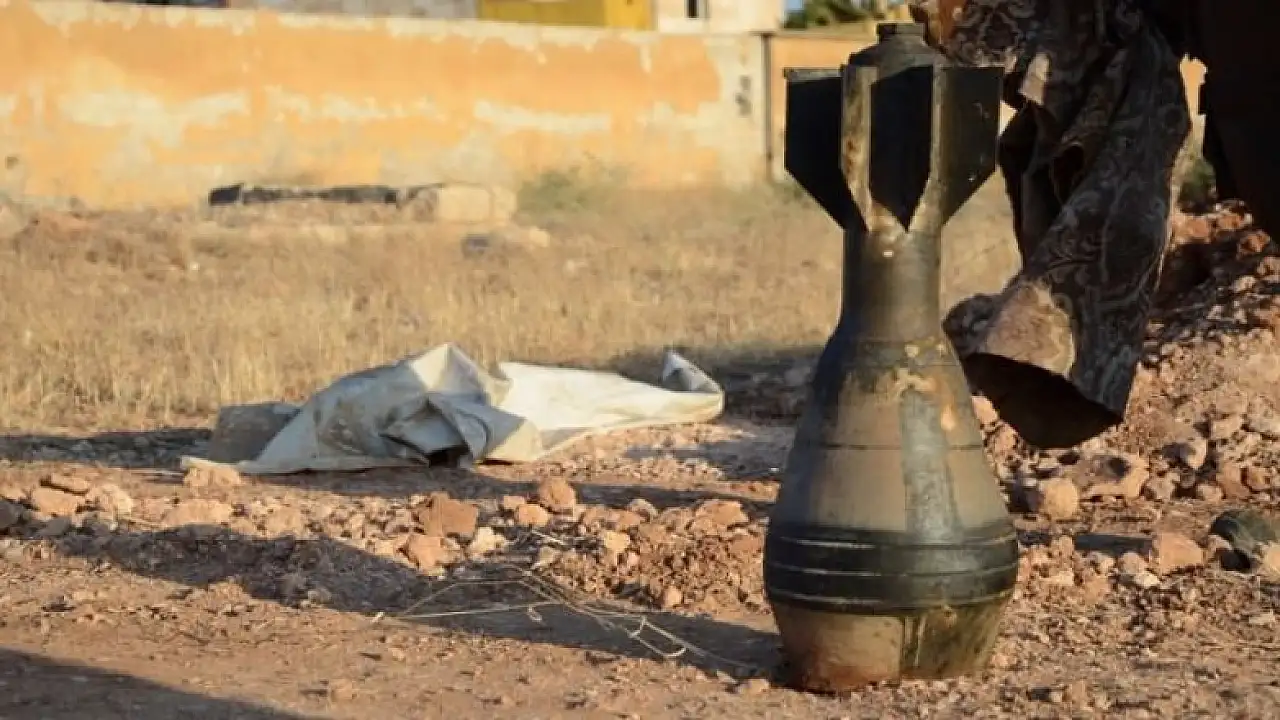 Atılan havan topu mermileri, imha edilmek üzere sivil savunma ekiplerince toplandı.