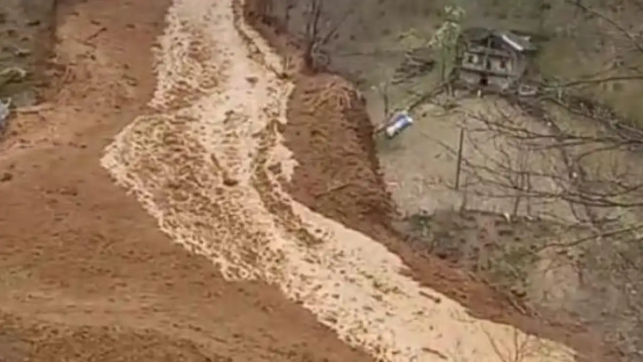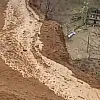Trabzon'un Sürmene ilçesi Oylum mahallesinde eriyen kar suları sonrası dağın yamacından akan çamur deryası geniş bir alanda çamur tabakası oluşturdu.