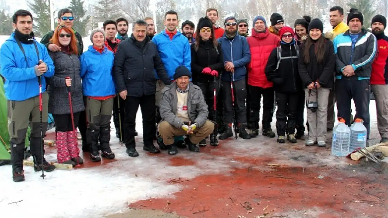 Ekşın Gençlik Doğa ve Spor Kulübü Lideri Alper Erdem, yaptığı açıklamada, 26 kişilik ekiple Kuğulu Park'tan Toros Dağı'nın zirvesindeki Ferzene Mağarası'na tırmandıklarını söyledi.