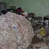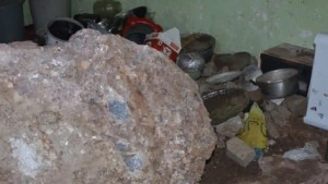 Dağdan kopan kaya parçası evin üstüne düştü