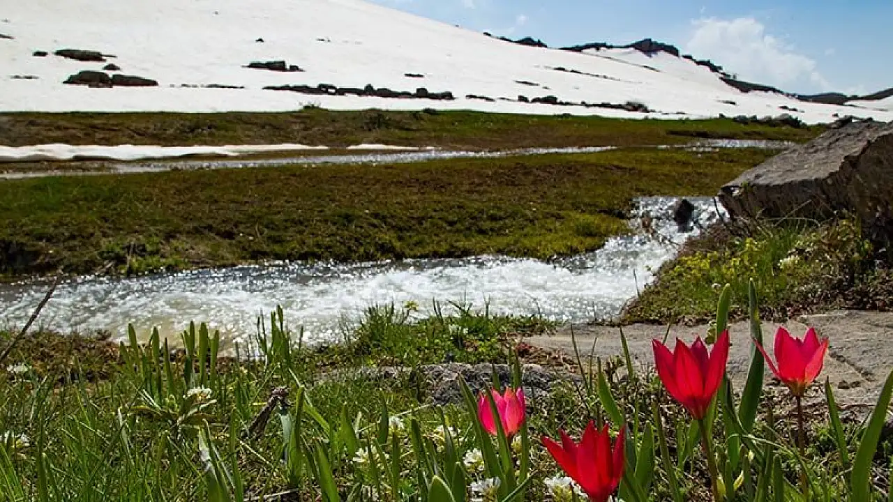 Yılın 5 ayı beyaz örtüyle kaplanan ilçede, yüksek kesimlerde halen metrelerce kar bulunurken, eteklerinde ilkbaharın güzelliği yaşanıyor.
