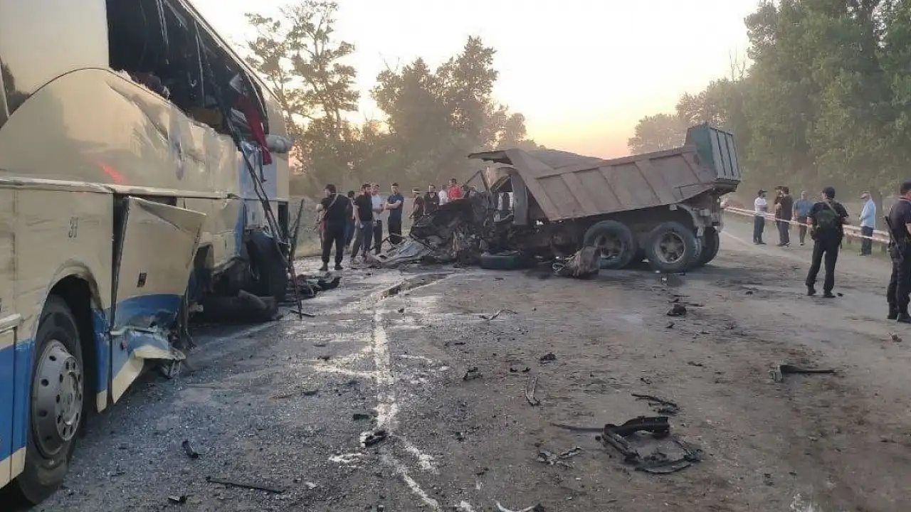 Dağıstan Özerk Cumhuriyetinde yolcu otobüsü, otomobil ve kamyonla çarpıştı: 8 ölü