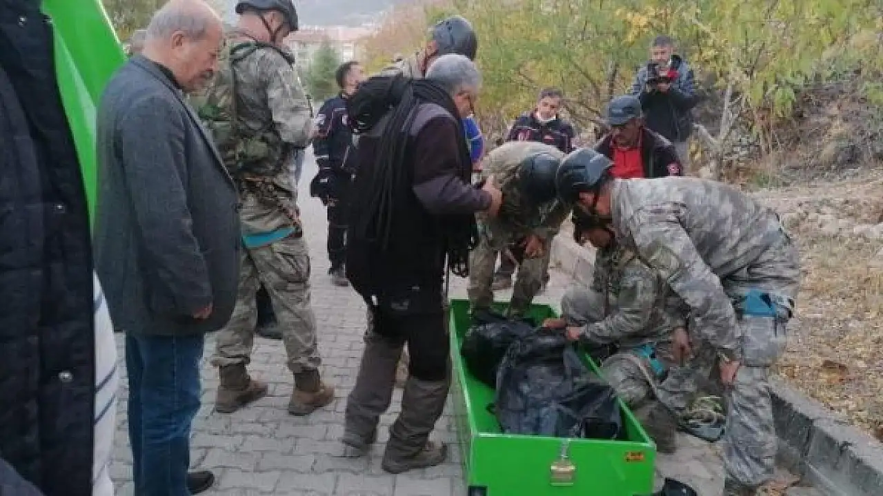Isparta'nın Eğirdir ilçesinde çıktığı dağda ölü olarak bulunan adamın cenazesi, yaklaşık 700 metre yükseklikten komandoların yardımıyla 4 saatte indirildi.