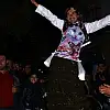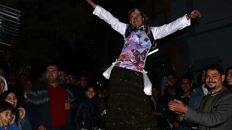 Yaklaşık 6 saat süren "işkencenin" sonunda etek giyip eşarp takan damadın, mahallenin ortasında bir masanın üstüne çıkıp oyun oynaması renkli görüntüler oluşturdu.
