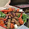 Beraberindeki közlenmiş biber ve kuru soğanla servis edilen kebap, hem görünüşü hem de tadıyla iştah kabartıyor.
