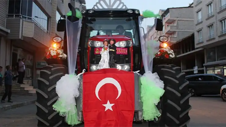 Hayatını Esma Koç ile birleştiren Emrah Koç, düğün töreni için traktörünü gelin arabası yaparak süsledi. Önünde 'Evleniyoruz Mutluyuz' yazılan traktörle, Sunay Mahallesi'ndeki kız evine gelen damat Emrah Koç, gelini aldıktan sonra gazetecilere açıklama yaptı. Çiftçiler için traktörün çok önemli olduğunu ifade eden Emrah Koç, "Biz çiftçi bir aileyiz. Değer verdiğimiz, yıllardır kullandığımız bir makine ile en mutlu günümüzde böyle bir planlama yaptık. Bu şekilde bir düğün organize ettik. İnşallah mahcup olmayız" dedi. Daha sonra şehir turu atılan traktöre vatandaşlar büyük ilgi gösterdi.