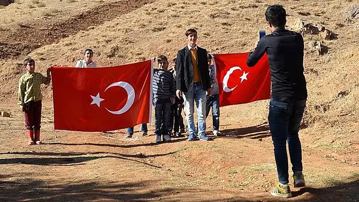 Bitlis'in Hizan ilçesinde bir grup genç, etkilendikleri 15 Temmuz darbe girişiminin kısa filmini cep telefonuyla çekmeye başladı.