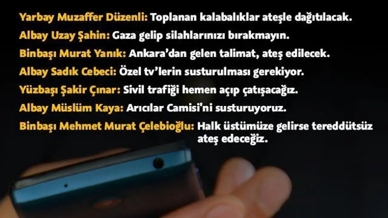 NOT: Eski Tuğgeneral Özkan Aydoğdu, telsizde birçok birlik komutanıyla irtibat halinde.