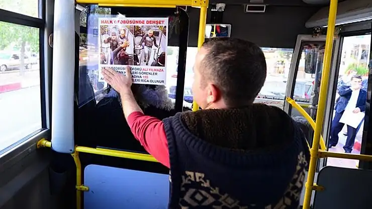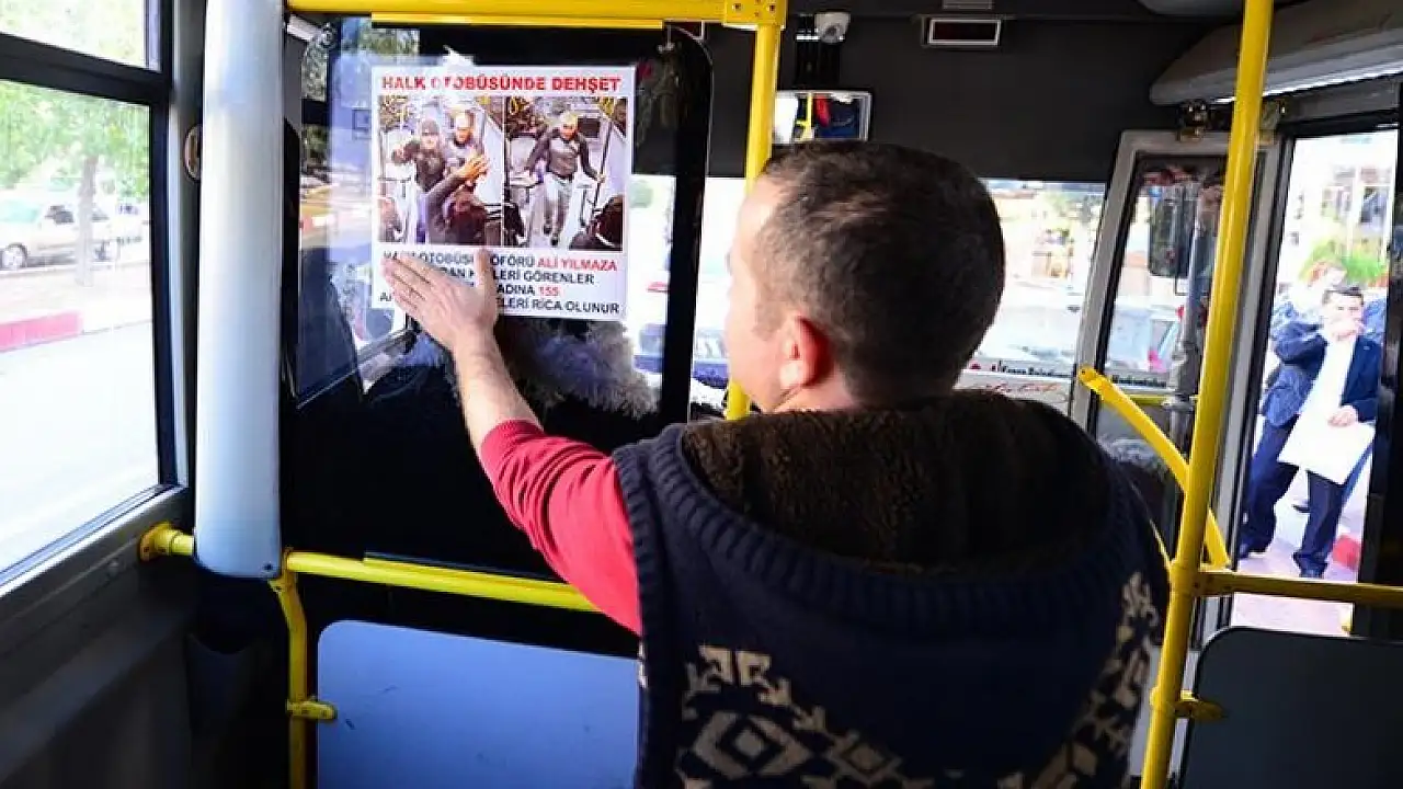 Antalya'da 15 gün önce kimliği henüz belirlenemeyen iki kişi tarafından darbedilen otobüs şoförü Ali Yılmaz, kendisine saldıranların fotoğraflarının bulunduğu afişleri otobüs ve duraklara astı.