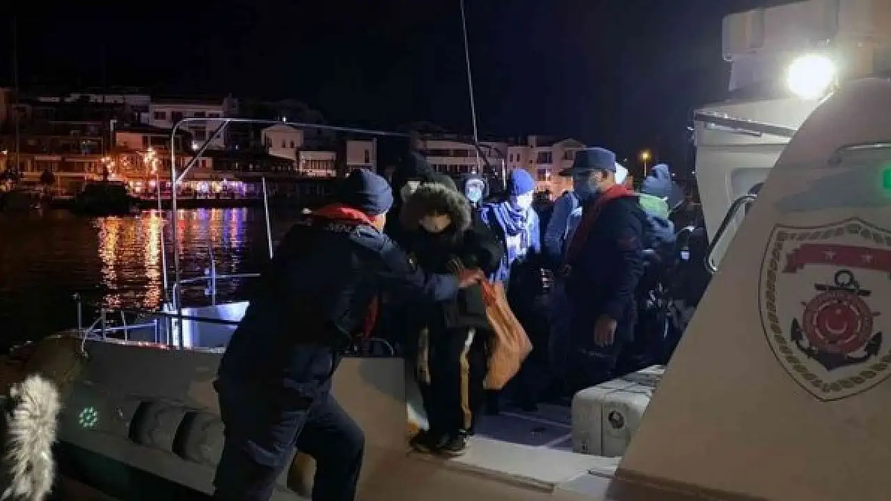 Türk Sahil Güvenlik ekipleri tarafından durdurulan lastik bot içinde 35 düzensiz göçmen yakalandı.