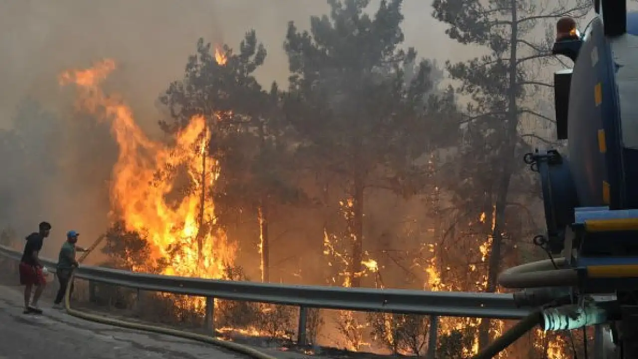 Muğla'nın Datça ilçesinde çıkın orman yangınında alevler, kuzeyden esen kuvvetli rüzgarın da etkisiyle deniz yönünde ilerlerken, alevler Datça-Hayıtbükü sahil yoluna ulaştı. Yol trafiğe kapatılırken, yangını söndürme çalışmaları havadan ve karadan devam ediyor. Yol kenarlarındaki ağaçlar, alevlerin yayılmasını önlemek amacıyla iş makineleriyle devrilip, kaldırılarak, emniyet şeridi oluşturuluyor. Karadan müdahaleler, alevlerin yolun her iki tarafına da sıçraması nedeniyle güçlükle yapılabiliyor. Alevlerin aynı hızla devam etmesi durumunda Avlana bölgesi ve Hayıtbükü Koyu'na kadar ilerleyebileceği üzerinde durulduğu bildirildi.