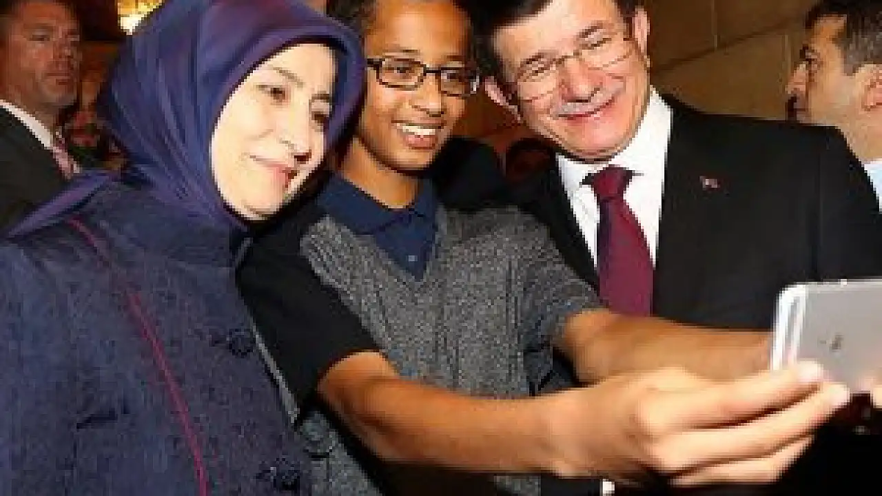 Başbakan Ahmet Davutoğlu, ABD'nin Teksas eyaletinde öğretmenine göstermek için okula götürdüğü elektronik saatin bomba sanılması üzerine kelepçelenerek gözaltına alınan Müslüman öğrenci Ahmed Muhammed ile görüşerek birlikte "özçekim" yaptı.