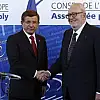 Daha sonra makam aracıyla Avrupa Konseyi binasına geçen Davutoğlu'nu, kapıda AKPM Başkanı Agramunt karşıladı. Şeref defterini imzalayan Başbakan Davutoğlu, ardından Agramunt ile görüştü.