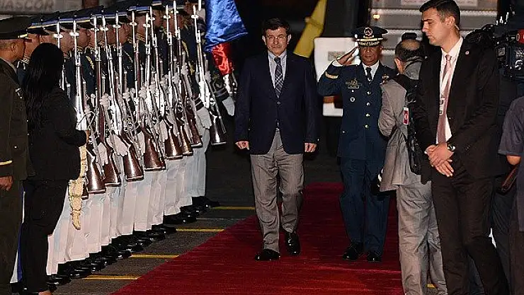 Başbakan Davutoğlu, Manila Villamor Askeri Hava Üssü Kalayaan Terminali'nde, askeri törenle karşılandı. Karşılamada, Türkiye'nin Manila Büyükelçisi Esra Cankorur ile Filipinli yetkililer de bulundu. Filipinli kızlar, Davutoğlu ve beraberindekilerin boynuna çiçekten kolye taktı.