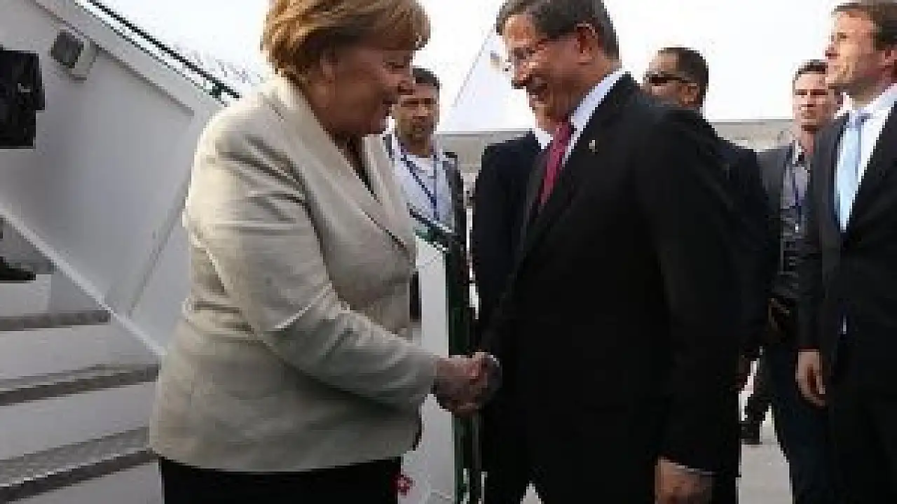 Almanya Başbakanı Merkel'i Gaziantep Havalimanı'nda Başbakan Davutoğlu karşıladı.