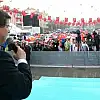 "Orada gördüğüm muhabbetten 'Ali Mihman' diyerek bizi kucaklarına basan, bağırlarına basan kardeşlerimizin gözlerinde gördüğüm ışıltıdan çok etkilendim ve hala o ışıltıyı her an gözlerinin içinde hissediyorum. İstanbul'a geçtik. İstanbul'da sadece kongrelerimize katılmadık aynı zamanda İstanbulumuzun ulaşım hatlarında devrim mahiyetindeki bir halkayı tamamladık. Yenikapı-Aksaray arasındaki metro bağlantısıyla Kartal'dan Yenikapı'ya, Yenikapı'dan Hacıosman'a ve diğer taraftan Başakşehir'e kadar giden üç kanatlı metro hatlarını birbirlerine irtibatlandırdık. İstanbulumuz yerin altından tam bir entegre projeye birbirine kenetlenmiş oldu."