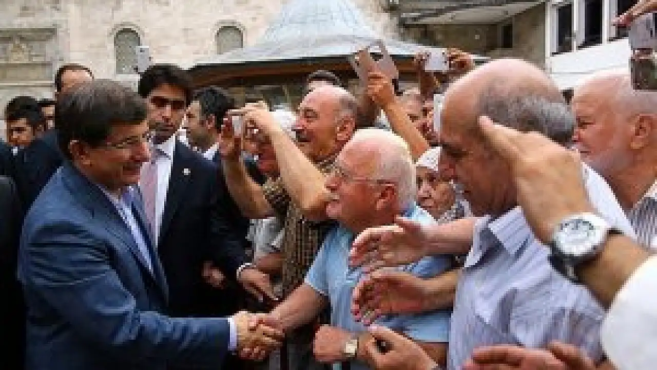 Vatandaşlar, namaz çıkışında Davutoğlu'na yoğun sevgi gösterisinde bulundu. Başbakan Davutoğlu da bazı vatandaşlarla tokalaştı, onları selamladı.