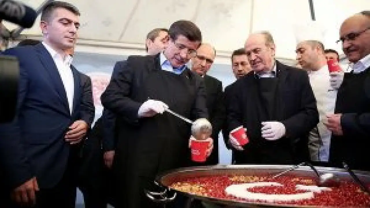 Başbakan Davutoğlu, İMES Sanayi Sitesi'ndeki iş yerlerini ziyaret etti, vatandaşlara ve gazetecilere aşure ikramında bulundu.
