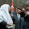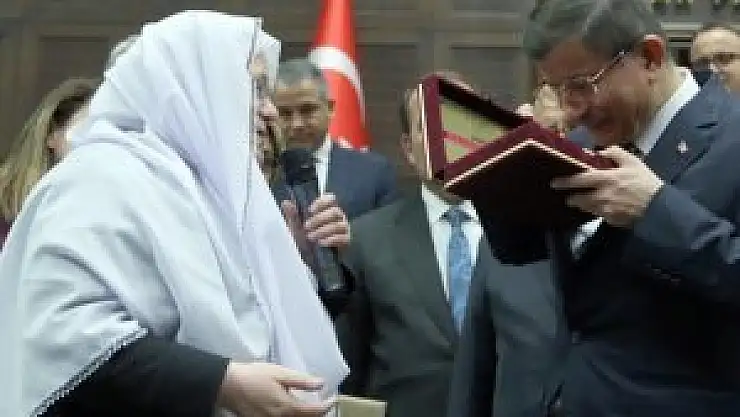 Eskişehir'in Mihalgazi Belediyesi'nin beyaz başörtülü ve şalvarlı Belediye Başkanı Zeynep Akgün, 400 yıllık gelenek çerçevesinde Başbakan Ahmet Davutoğlu'na 1900'lü yıllardan kalma Kur'an-ı Kerim hediye etti.
