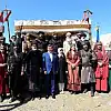 Davutoğlu, "Kayı obası" adı verilen alanın girişinde ise "Ertuğrul Gazi" karakterini canlandıran Engin Altan Düzyatan'ın da aralarında bulunduğu atlı grup tarafından karşılandı.