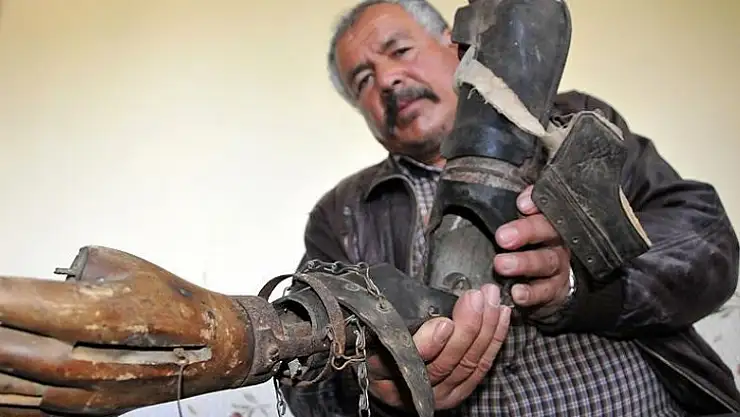Birinci Dünya Savaşı'nda Kafkas Cephesi'nde şarapnel parçasıyla kolu dirsekten kopan ve Ruslara esir düşen Sivaslı Mehmet Çavuş'a esir kampında takılan asırlık protez, vefatının ardından yıllardır ailesince gururla muhafaza ediliyor.
