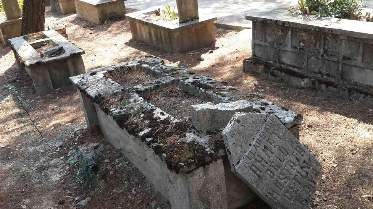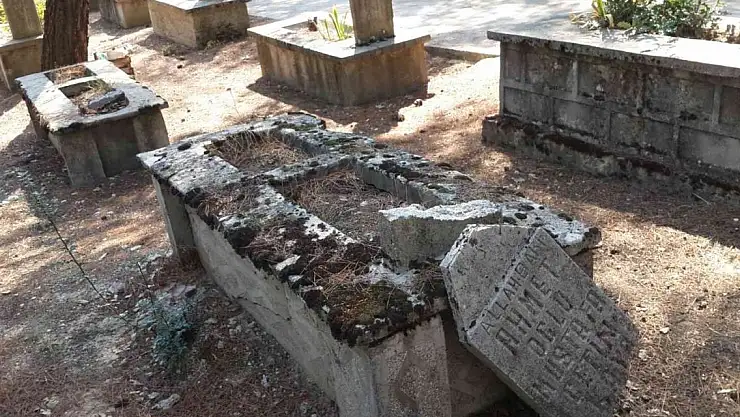 Denizli'nin Buldan ilçesindeki kabristanda bulunan mezar taşlarının kimliği belirsiz kişi ya da kişilerce tahrip edilmesi tepki topladı.