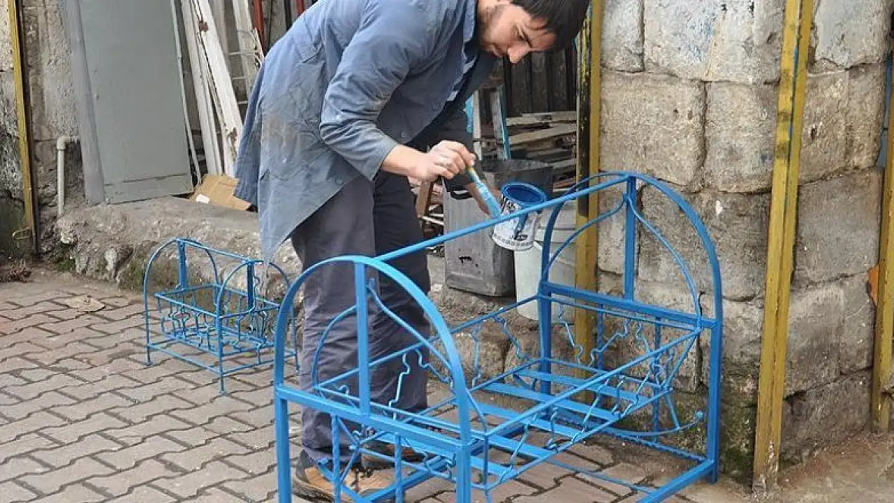 Tarihi Oturakçılar Pazarı'nda demiri geçirdikleri işlemlerin ardından paslanmamaları için maviye boyayarak, az da olsa gelen talepleri karşılamaya çalışan ustalar, yaptıkları beşikleri, İstanbul, Ankara, İzmir, Kayseri ve Hatay gibi büyükşehirlere gönderiyor.