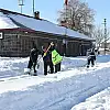 Demiryolu işçileri, sabahın erken saatlerinde sırtladıkları küreklerle istasyonda bulunan demiryolu hattına inerek kar temizleme çalışmasına başlıyor.