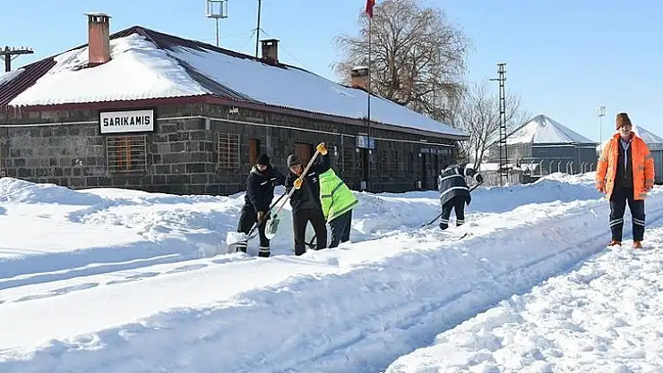 Kars'ın Sarıkamış ilçesinde çalışan TCDD görevlileri, demiryolu ulaşımının Doğu Anadolu Bölgesi'nde etkili olan 'kutup soğukları'ndan etkilenmemesi ve 'kara tren'in gecikmeden istasyona varması için çalışıyor.