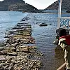 Muğla'nın Bodrum ilçesinde, denizin çekilmesiyle Tavşan Adası'na uzanan tarihi sur kalıntıları ortaya çıktı.