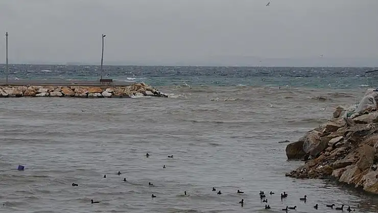 Yalova'da dün etkili olan yağmur sonrasında, şehrin ortasından geçen Safran Deresi'nin taşıdığı çamurlu su, denizi kahverengiye boyadı.