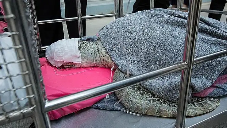 Başkent Bangkok'ta ameliyat edilen "Bank" adlı dişi yeşil deniz kaplumbağasının, bölge halkının uzun zamandır içine bozuk para attığı havuzda yaşadığı belirtildi.