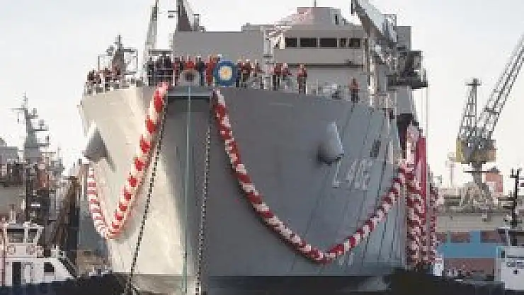 Tamamen milli imkanlarla yapılan tank çıkarma gemisi Bayraktar, Cumhurbaşkanı Erdoğan'ın katıldığı törenle denize indirildi.