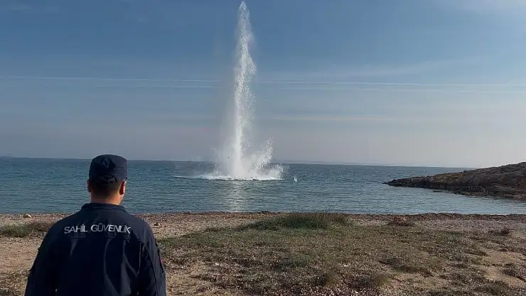 Çanakkale'nin Bozcaada ilçesinde denizde bulunan İngiliz yapımı deniz mayını kontrollü bir şekilde patlatılarak imha edildi.