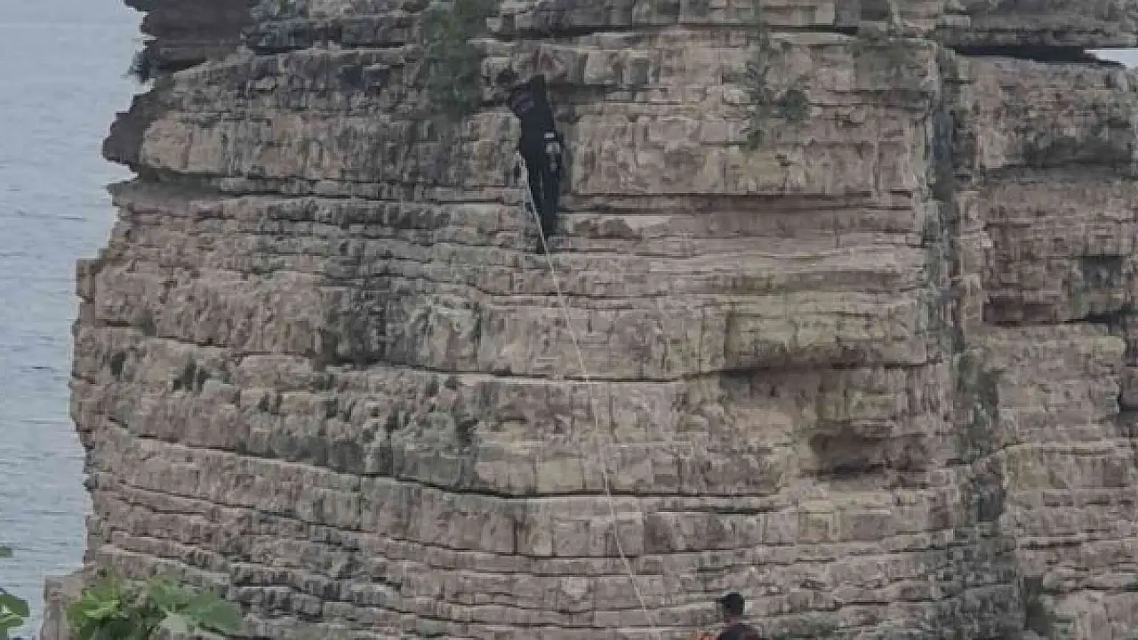 Kocaeli'nin Kandıra ilçesinde denize atlamak için 20 metrelik kayaya tırmanan genç atlayamadı.