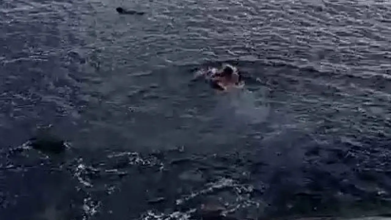 Pendik'te denize düşen kadın bir vatandaş tarafından kurtarıldı. O anlar cep telefonu kamerasına yansıdı.