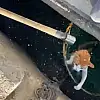 Mersin'de denize düşen kedi balıkçılar tarafından kurtarıldı.