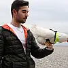 Arkadaşlarıyla sup board yaparken mola verdikleri alanda denize bir hayvanın düştüğünü fark ettiklerini söyleyen Özden, "Her zaman mola verdiğimiz yerde kahvemizi içerken yanımıza bir şey düştüğünü fark ettik. Biz önce martı sandık ama tavukmuş. Yaklaşınca biraz ıslanmış ve korkmuş olduğunu fark ettik. Hemen sörf tahtasının üzerine alıp su verdik, temizledik. Karaya döndüğümüzde ise kontrollerini yaptırdık" dedi.
