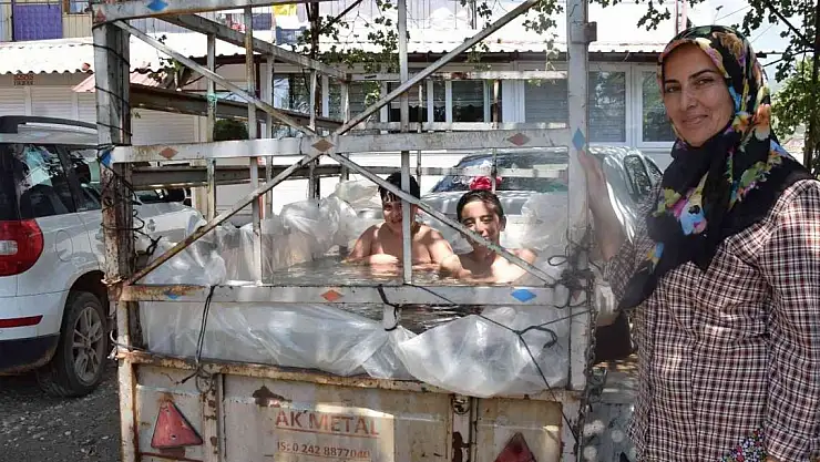 Anne Fatma Uysal (35) ise; "Çocuklarımızı sık sık denize götürme imkânımız olmuyor. Çocuklarımızda kendi imkânları ile römorku havuza çevirdiler. Çocuklarımız römork havuza girmekten çok mutlu oluyorlar. Çocuklar serinledikten sonra da kirlenen suyu meyve ağaçlarımıza veriyoruz" dedi.