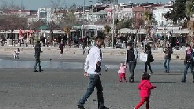 Hafta sonu hava sıcaklığının 10 dereceyi bulduğu ilçede vatandaşlar temiz hava ve güneşin tadını çıkardı. Çay bahçeleri, oyun parkları ve sahillerde zaman geçiren vatandaşlar, iki günde deniz suyunun 70 metre çekilmesiyle birlikte ortaya çıkan adacıklara akın etti.
