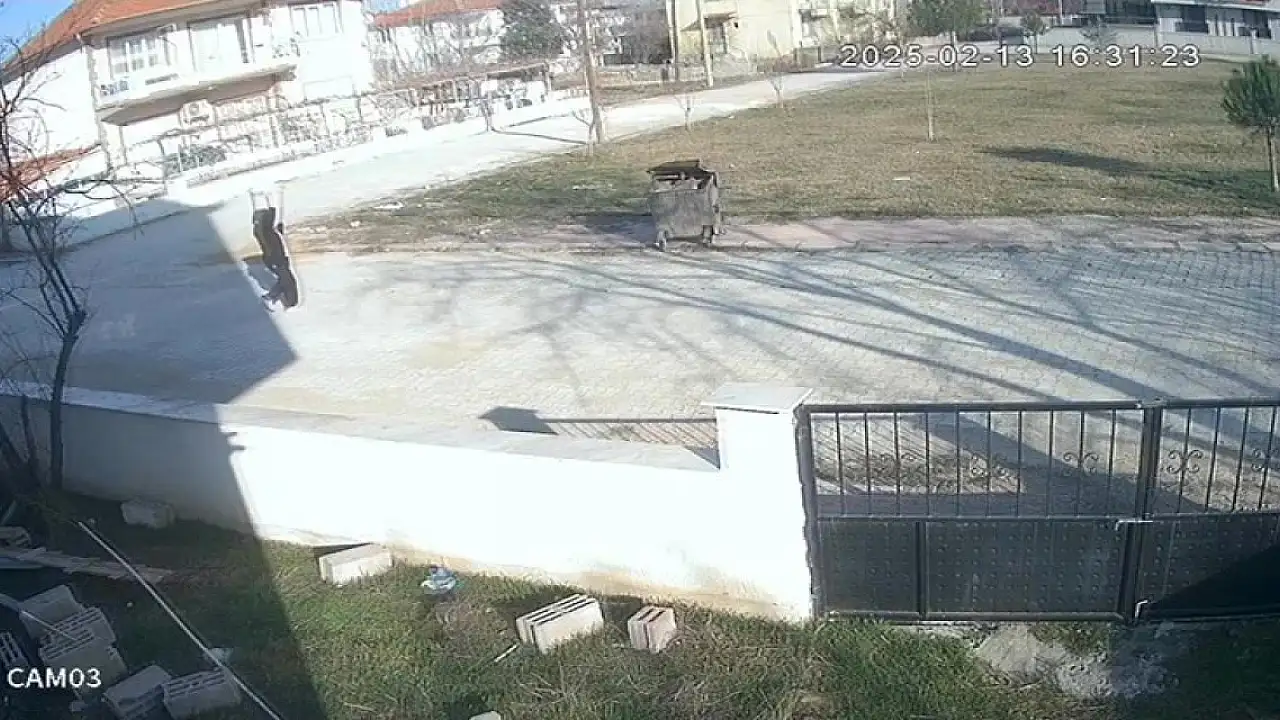 Güvenlik kamera kayıtlarında, bir kişinin omzunda taşıdığı çöp kovasını konteynere dökerek uzaklaştığı görülüyor.