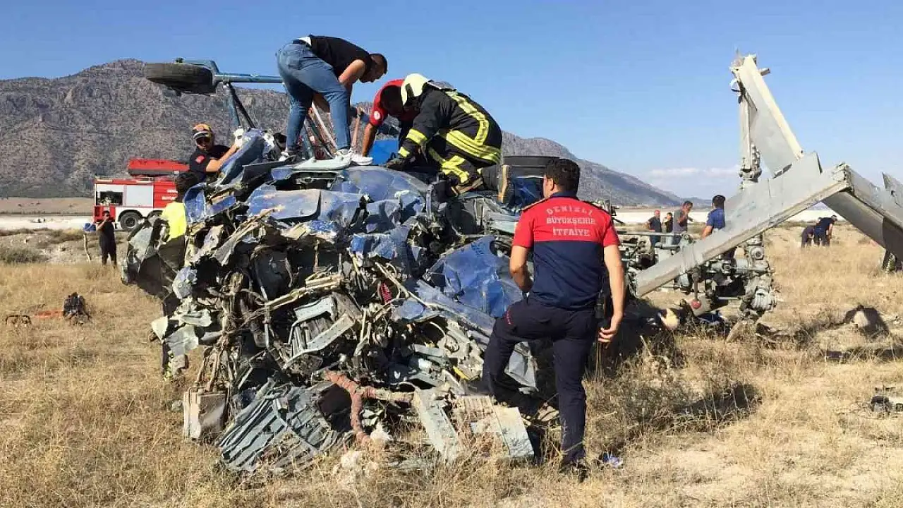 Denizli'de düşen helikopterin enkazı kaldırıldı