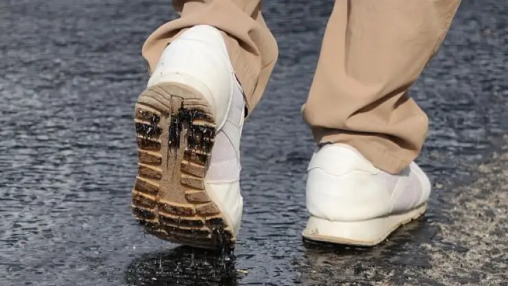 DENİZLİ'de, mevsim normallerinin üzerinde seyreden hava sıcaklığı nedeniyle kara yolundaki asfaltın bazı yerlerinde erimeler oldu. Ayakkabılar asfalta yapışırken, sürücüler ise asfaltın kuru yerlerinden gitmeyi tercih etti.