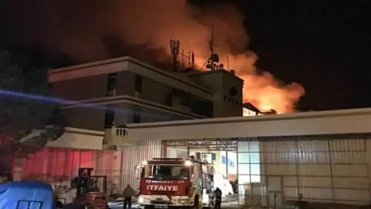 Fabrika alev alev yanmaya devam ederken, itfaiye ekipleri 20'nin üzerinde araçla yangına müdahale ediyor.
