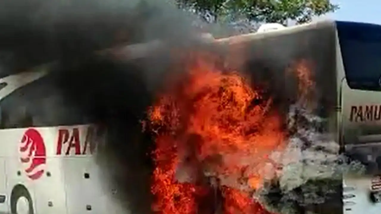 Denizli'nin Pamukkale ilçesinde, seyir halindeki yolcu otobüsünün motor kısmında çıkan yangın, itfaiye ekiplerince kısa sürede söndürüldü.Olay, saat 13.00 sıralarında, Antalya- Denizli yolu Gökpınar Mahallesi'nde meydana geldi. Antalya'dan Çanakkale'ye yolcu taşıyan İbrahim Kayalar (45) yönetimindeki "Pamukkale Turizm" firmasına ait, 34 EYT 527 plakalı yolcu otobüsünün motor kısmında yangın çıktı. Alevleri fark eden şoför, aracı yol kenarına çekip, yolcuları tahliye etti. İhbarla bölgeye itfaiye ve polis ekipleri sevk edildi. İtfaiye ekipleri, otobüsteki yangını kısa sürede söndürdü. Otobüs, kullanılmaz hale gelirken, 25 yolcu da başka araca nakledildi.