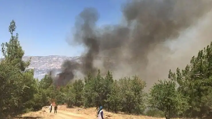 Ekiplerin çalışmalarına mahalle sakinleri de destek veriyor. Bölgede bir yangın söndürme uçağı da havadan alevlere müdahale etti.