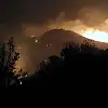 Bölgede etkili olan şiddetli rüzgara rağmen havanın kararmasının ardından müdahale yer ekiplerinin çalışmasıyla sürüyor.
