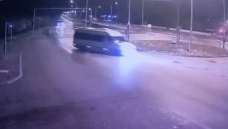 Denizlispor kafilesinin kaza anı kameraya yansıdı. Görüntüler kontrolden çıkan aracın süratli bir şekilde kayıp yan yatması yer alıyor.