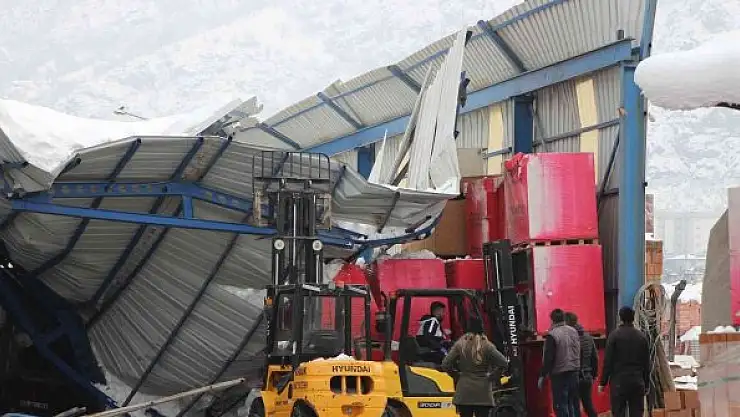 Deponun çatısı biriken karlar temizlenmeye başlarken çöktü