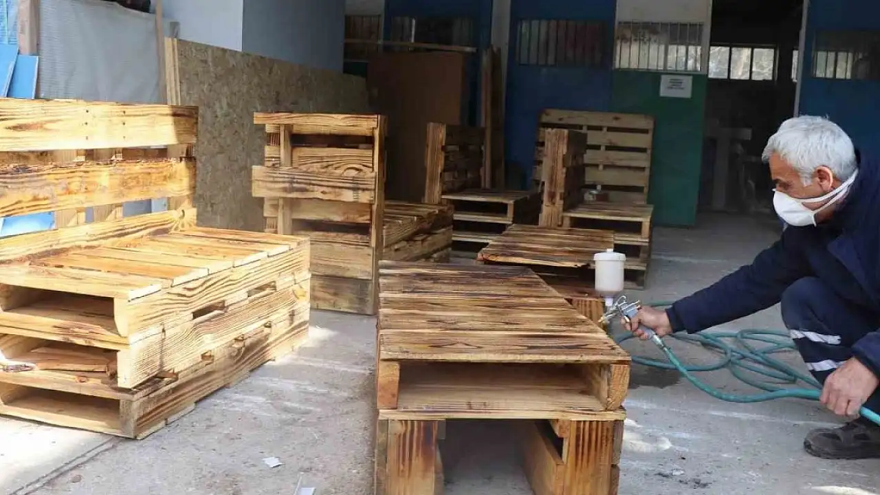 Kocaeli'de İzmit Belediyesi'ne bağlı ekipler, deprem bölgesinde kurulan Çadır Yaşam Alanları için masa ve sandalye imalatı yapıyor.